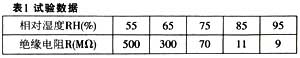 (1) 濕度的影響表 1 中的一組試驗(yàn)數(shù)據(jù), 表明濕度對絕緣電阻測量的影響。 由表 1 可見,絕緣電阻對濕度變化是很敏感的。 相對濕度增加, 絕緣電阻降低。 當(dāng)環(huán)境的相對濕度大于75 %時(shí), 一般在絕緣材料表面上開始出現(xiàn)微小的水珠或薄薄的水膜。 實(shí)際上, 表面絕緣電